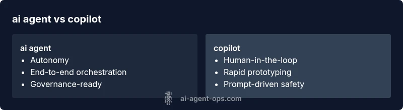 In modern AI ecosystems, two archetypes frequently surface: ai agent and copilot. An ai agent is designed to autonomously interpret goals, plan a course of action, and execute tasks across multiple tools, apps, and data sources. A copilot, by contrast, acts as a high-precision assistant that augments human decision-making with suggestions, templates, and rapid prototyping. The distinction is not just about capability; it reflects ownership, governance, and risk posture. According to Ai Agent Ops, the choice between these paradigms should start with the organization’s objectives, governance model, and the degree of autonomy required. The Ai Agent Ops team emphasizes that most teams do not rely on one approach alone; instead, they blend agentic capabilities with human oversight to balance speed and safety. This frame sets the stage for a deeper comparison of how each approach handles goals, actions, and accountability.
