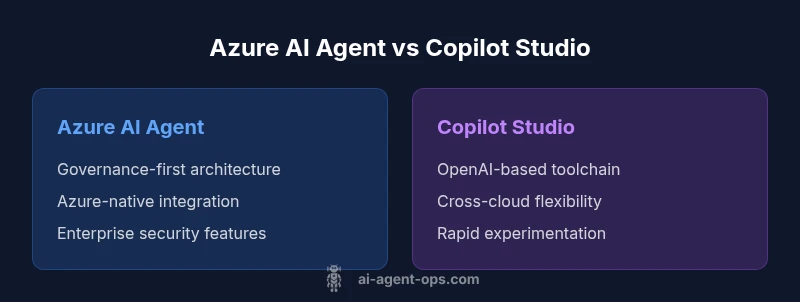 According to Ai Agent Ops, azure ai agent vs copilot studio are two prominent paths for embedding autonomous AI behavior into business workflows. Both platforms aim to reduce manual toil by orchestrating agents that can reason, act, and learn across systems. However, their design choices reflect different priorities: Azure AI Agent centers on enterprise governance, seamless integration with the Azure stack, and strong security controls; Copilot Studio emphasizes fast experimentation, flexible model choices, and OpenAI-based tooling. For teams evaluating 2026 agent platforms, the decision often hinges on ecosystem alignment, desired latency, and governance requirements, rather than a single feature list. The comparison azure ai agent vs copilot studio will surface in practical terms like deployment patterns, plugin support, and data governance models. Ai Agent Ops's analysis suggests that enterprise teams will favor Azure AI Agent when governance and auditability trump speed of iteration.