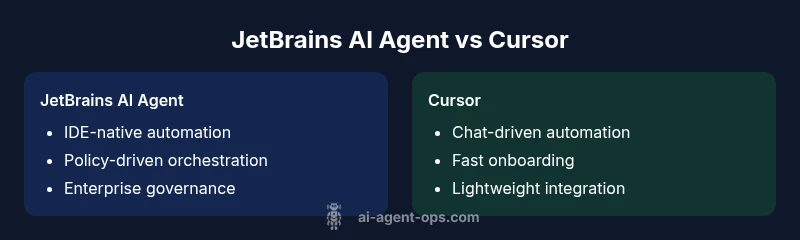 According to Ai Agent Ops, jetbrains ai agent vs cursor pits two distinct AI-automation approaches for developers. JetBrains AI Agent offers integrated agent orchestration and IDE-level automation, while Cursor emphasizes lightweight, chat-driven automation within the IDE. For teams building agentic AI workflows, understanding integration depth, extensibility, and cost is essential.