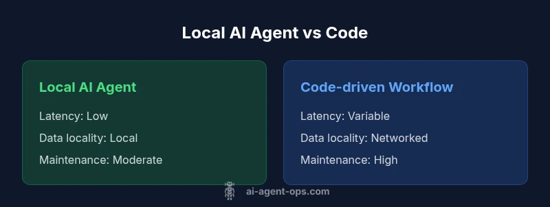 In recent AI-enabled development, the phrase local ai agent vs code captures two fundamentally different paradigms for building intelligent software. According to Ai Agent Ops, a local AI agent runs with components that can operate on a developer's workstation or an on-prem server, preserving data locality and enabling offline capability. By contrast, traditional code-first workflows rely on explicit logic implemented in software you ship and update through version control. This article compares these approaches through practical criteria: latency, data governance, debugging, deployment, and maintainability. We ground the discussion in real-world patterns developers encounter when building agentic AI workflows, and we explain how organizations should think about tradeoffs when choosing between a local AI agent and code-driven systems.