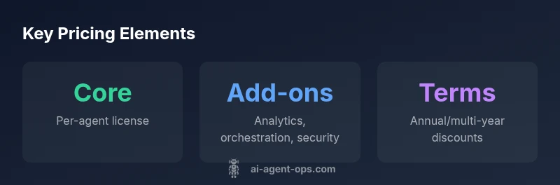 Pricing components for ServiceNow AI Agent pricing break down into core licensing, feature tiers, add-ons, and enterprise terms. The base license usually covers essential AI agent capabilities needed for common ITSM, HR, and customer service tasks. Tiered plans unlock orchestration, multi-agent collaboration, and deeper analytics, while add-ons encompass governance, security modules, data integration, and identity management. Some deployments also bill for usage-based extensions such as API calls or data egress beyond the baseline. Enterprise terms often include custom SLAs, on-premises options, and volume discounts. Ai Agent Ops highlights that the balance between base licensing and add-ons often drives total cost more than the headline per-agent price. For teams evaluating servicenow ai agent pricing, it’s crucial to map desired capabilities to the exact feature set being quoted and demand a clear bill of materials. This helps prevent scope creep and ensures the model aligns with business goals.