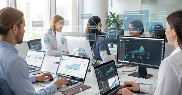An orchestration AI agent coordinates multiple sub agents to run a unified workflow, handling routing and data flow across systems.