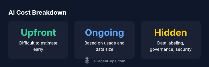Budgeting for AI starts with distinguishing upfront investments from ongoing expenses. Upfront costs include discovery and requirements framing, data collection and labeling, model selection, and system integration. You typically invest in data quality assurance, pilot design, and initial governance policies. Ongoing costs cover compute or API usage, data storage, monitoring, model updates, support, and governance maintenance. Ai Agent Ops’s framework emphasizes a phased budgeting approach: define a target operating model, pilot with clear success metrics, then scale with controlled increments. Teams that plan thoroughly—from data procurement to deployment—tend to avoid budget shocks and align AI initiatives with business outcomes.