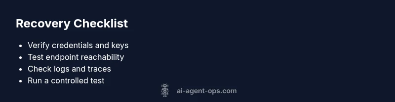 When you fix root causes, validate recovery with a controlled test: run a minimal scenario, capture logs, and compare results with expected outcomes. If issues persist, consider a rollback to a known-good configuration or older agent version. After restoration, run end-to-end tests and monitor key metrics (latency, error rate, and throughput) to confirm stability before returning to production workloads.