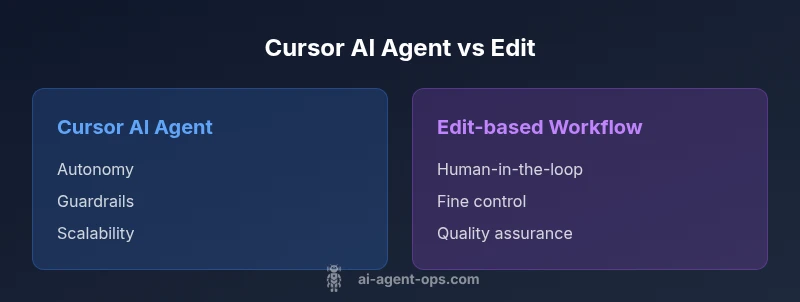 The landscape of AI-assisted automation has evolved from manual edits and scripted prompts to increasingly autonomous cursor-based AI agents. In many organizations, teams now pair these strategies to balance speed and quality. According to Ai Agent Ops, the shift toward agentic AI workflows reflects a growing preference for systems that can initiate, monitor, and adjust tasks with minimal manual intervention while retaining guardrails and auditability. The keyword cursor ai agent vs edit captures this spectrum: one approach emphasizes automated action and scale; the other emphasizes precise, expert input at key decision points. As teams adopt these patterns, the challenge becomes designing orchestration layers that keep agents aligned with business rules, data governance, and user expectations. In practice, a well-architected hybrid model often yields the most resilient outcomes, especially when human oversight is essential for safety and compliance.