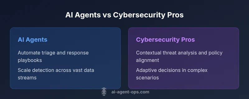 In the realm of cyber defense, AI agents refer to autonomous software entities that can monitor, analyze, and respond to signals across networks, endpoints, and cloud services. They leverage machine learning, anomaly detection, and rule-based orchestration to triage alerts, correlate events, and trigger automated playbooks. Cybersecurity professionals, by contrast, are human experts who interpret data, apply context, and make strategic decisions about risk, policy, and incident response. When we talk about comparing ai agents to cybersecurity professionals, the core question becomes: where does automation add value, and where is human judgment indispensable? According to Ai Agent Ops, the most effective security postures combine capable agents with skilled practitioners to cover both scale and nuance. In practice, a blended model starts with clear roles, governance, and auditable workflows that prevent automation from outrunning oversight. Recognizing the strengths and limits of each side helps teams design defense strategies that scale without sacrificing critical thinking. In this analysis, we will repeatedly reference how the two work in concert, rather than viewing them as mutually exclusive.