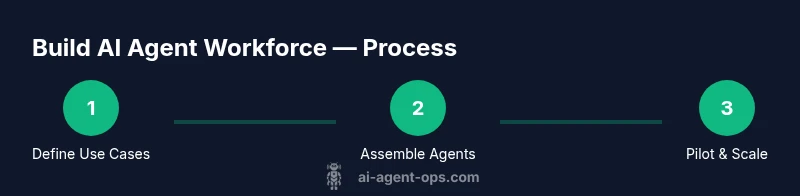 An AI agent workforce is a collection of autonomous software agents designed to perform tasks, make decisions, and collaborate with humans across business processes. This approach avoids a single monolithic system and instead builds modular agents that handle activities like data extraction, scheduling, email triage, customer interactions, and routine decision-making. This modularity enables rapid experimentation, safer scaling, and clearer ownership. This guide explains how to build AI agent workforce effectively, linking technical capabilities to real business value. According to Ai Agent Ops, starting with high-impact, repeatable tasks and establishing governance around data, ethics, and risk helps ensure sustainable automation. The practical value is measured in faster cycles, reduced toil, and more time for people to tackle strategic work.