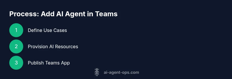 Integrating an AI agent in Teams transforms collaboration by acting as a smart assistant in channels, chats, and meetings. Teams users can ask the agent to draft messages, summarize conversations, fetch data from integrated services, or run automation tasks without leaving the app. From product teams to field engineers, the ability to access AI-powered insights where work happens reduces context switching and speeds decision cycles. According to Ai Agent Ops, early adopters focus on clear use cases, defined data boundaries, and governance to avoid data leakage. This article explains how to add an AI agent in Teams with practical steps, starting from planning to deployment. It also covers risk considerations and how to measure success. By the end, you’ll know which architecture options fit your needs and how to test and iterate in a safe development environment.