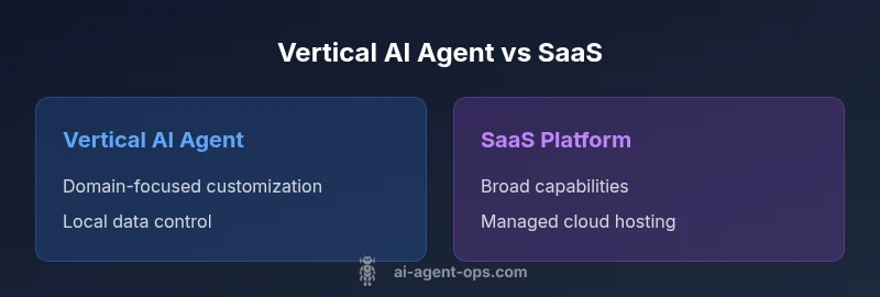 The growth of AI agents has introduced two dominant patterns for automation: vertical AI agents and SaaS platforms. A vertical AI agent is a domain-specific solution built to match a narrow set of workflows, data models, and governance requirements within a given industry or function. In contrast, a SaaS (Software-as-a-Service) platform offers broad capabilities designed to address a wide audience with generic workflows, rapid provisioning, and a managed cloud experience. For teams evaluating the journey from generic tooling to specialized automation, understanding the differences between vertical ai agent vs saas is essential. According to Ai Agent Ops, many organizations start with SaaS for quick wins and then layer in vertical agents where customization unlocks meaningful value. The decision is not binary; many teams pursue a blended approach to balance speed, control, and scalability. As you plan, map your domain’s unique data flows, governance requirements, and integration patterns to determine which path—or combination—best aligns with strategic goals.